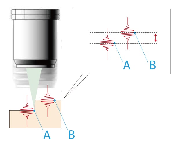 所產(chǎn)生的複合波形峰值即為鏡頭的焦點位置,可透過與鏡頭的移動距離同步來確定高度。