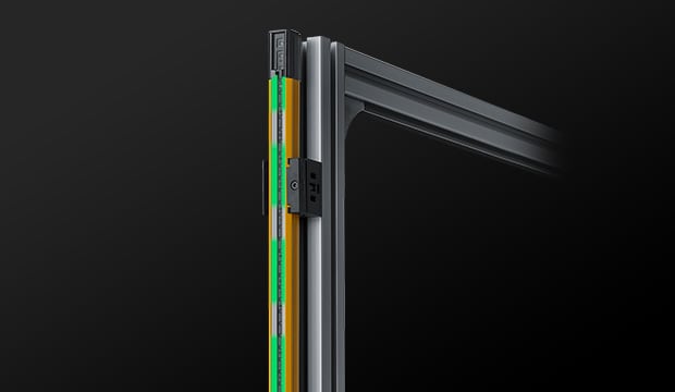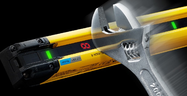 安全光柵GL-V 系列搭載大型線狀指示燈,僅靠本體即可清楚顯示狀態(tài)。當(dāng)入光時(shí)顯示綠色,遮光時(shí)顯示紅色,即使從遠(yuǎn)處也能一眼辨識(shí)光柵是否遮光,有助於迅速復(fù)原作業(yè)。此外,透過顯示模式還可確認(rèn)受光量降低或錯(cuò)誤狀態(tài),便於及早採取對(duì)策。GL-V 系列可廣泛應(yīng)用於設(shè)備啟動(dòng)、調(diào)整與運(yùn)轉(zhuǎn)階段。雖然尺寸僅為22 mm × 22 mm,卻具備約3 mm 厚的堅(jiān)固外殼結(jié)構(gòu),展現(xiàn)高耐用性。重新設(shè)計(jì)的內(nèi)部光學(xué)構(gòu)造更支援最長15 公尺的檢測(cè)距離。