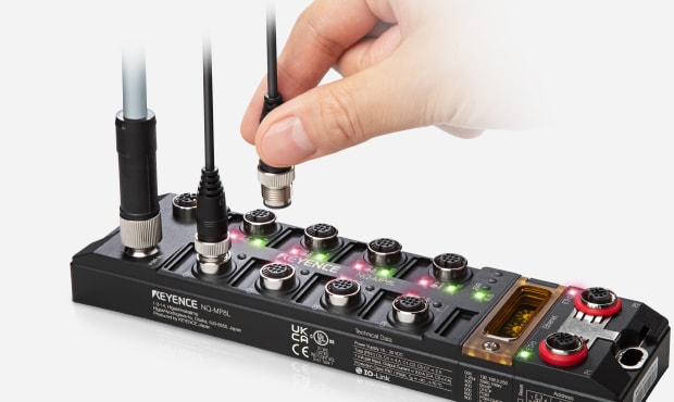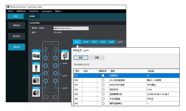 NQ 系列網(wǎng)路通訊模組做為IO-Link主站,大幅簡(jiǎn)化感測(cè)器的連接方式。透過(guò)M12連接器輕鬆連接支援IO-Link設(shè)備,大幅削減啟動(dòng)時(shí)間。此外,NQ Sensor Monitor(專用軟體)連接KEYENCE產(chǎn)品後會(huì)自動(dòng)辨識(shí),誰(shuí)都能輕鬆進(jìn)行感測(cè)器的參數(shù)設(shè)定等操作。當(dāng)然,也支援所有支援IO-Link的設(shè)備。