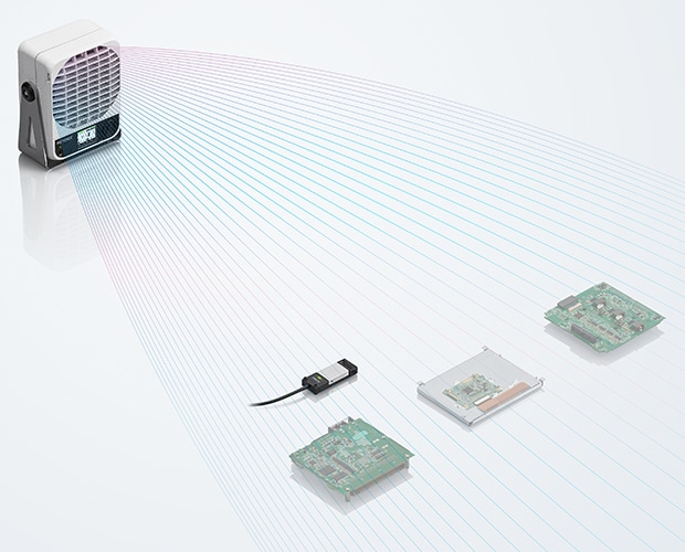 安裝距離最大200 mm、對象區(qū)域200 mm可消除靜電。採用超小型Φ10 mm的靜電消除頭,適合安裝在裝置上,或在狹隘的場所使用。