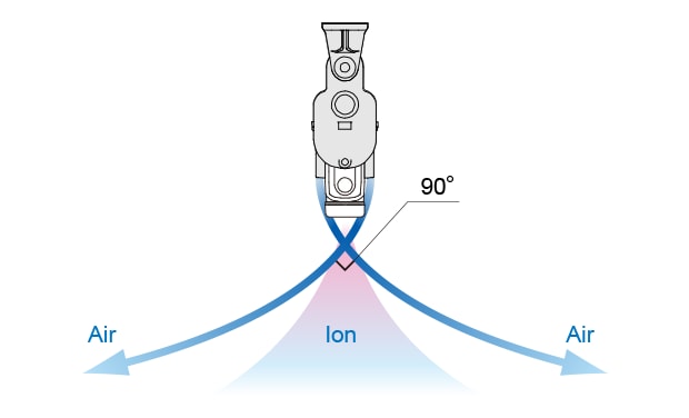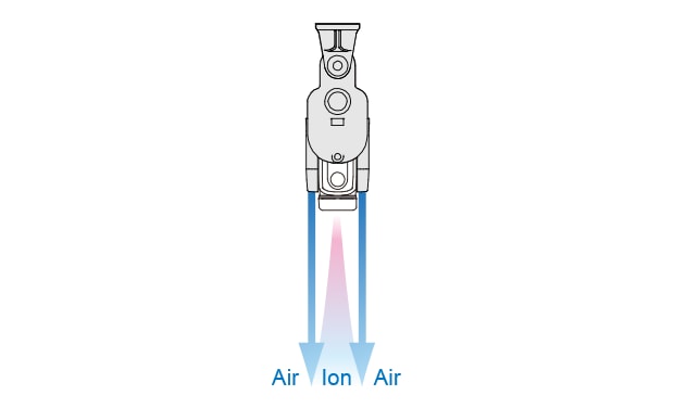 透過將之前廣受好評的脈衝AC 方法和I.C.C. 控制進(jìn)行組合,實現(xiàn)了同級中最高的單電極離子生成量。另外, 透過將高功率風(fēng)扇和吹氣結(jié)構(gòu)進(jìn)行組合, 實現(xiàn)了同級中速度最快、 範(fàn)圍最廣的靜電消除。