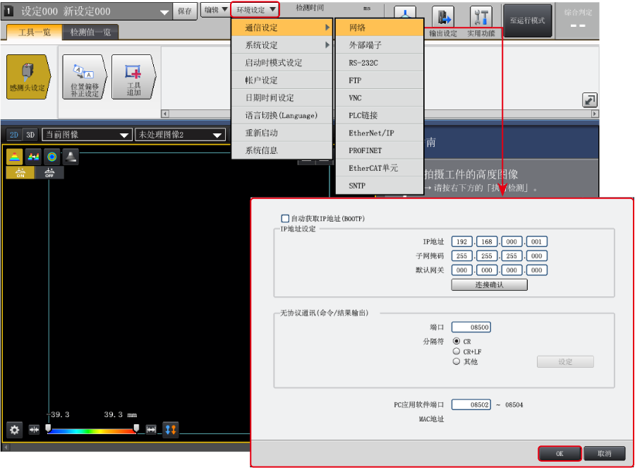 LJ-S8000 系列可透過 EtherNet/IP 輸出結(jié)果資料 (測量結(jié)果、判定結(jié)果等)。此外,也可以使用指令由PLC進行觸發(fā),或切換檢測設(shè)定。