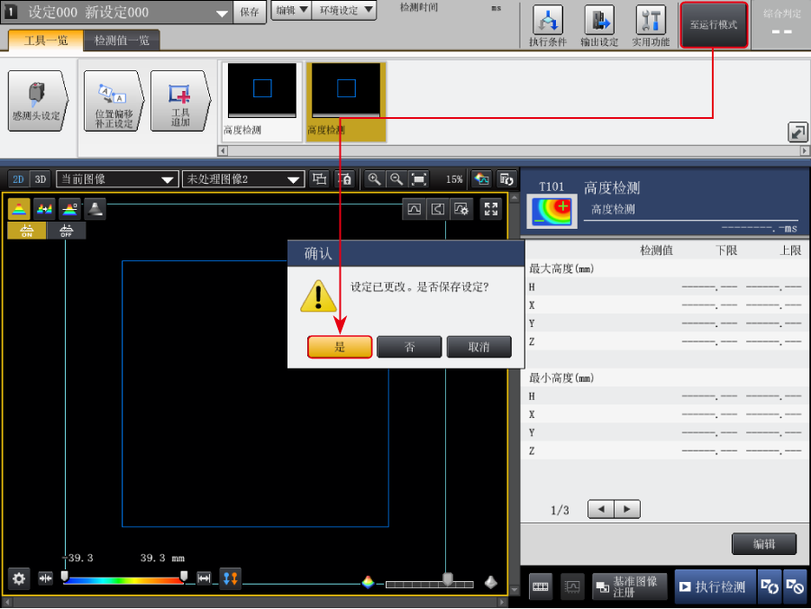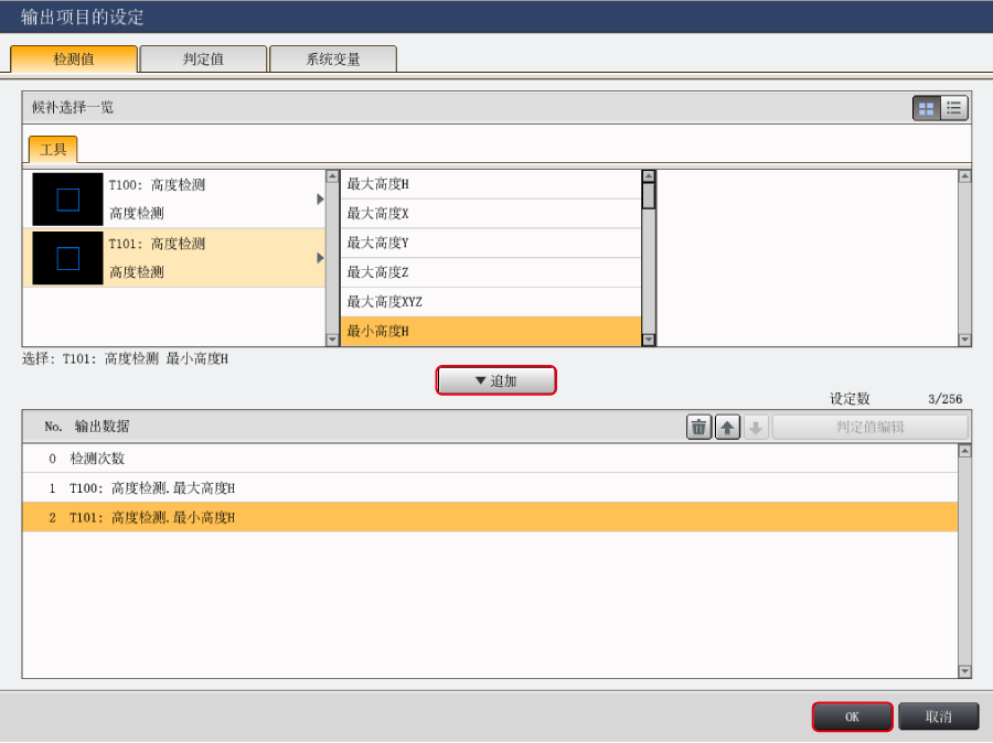 輸入以下數(shù)值。(把工具編號100的高度測量的最大高度H的上限值設(shè)定為1.234mm)