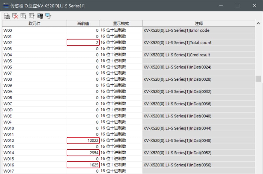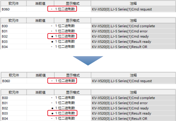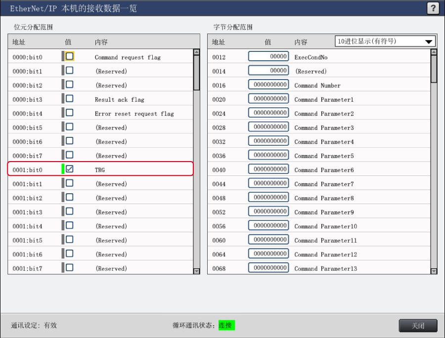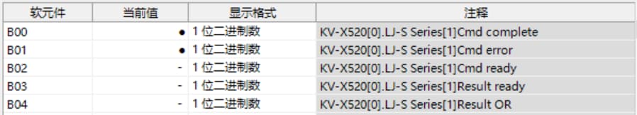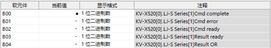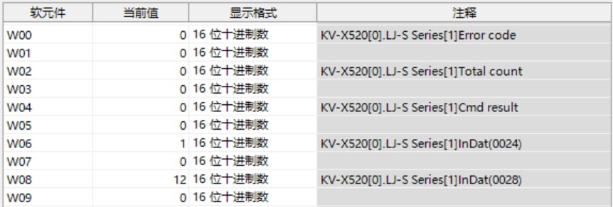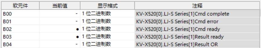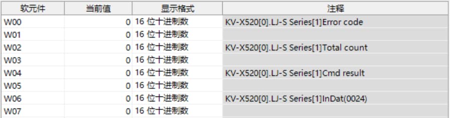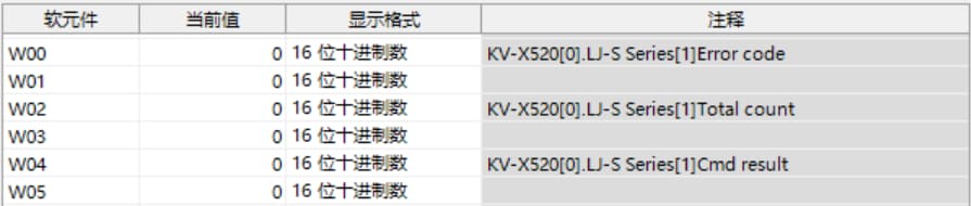 表中所示的 W**** 是僅將一個 LJ-S8000 系列連接至 KV-X 系列 CPU 單元作為 EtherNet/IP 設(shè)備時,鏈路中繼和鏈路暫存器分配至地址的範例。如果設(shè)定了初始值,LJ-S8000 會從 W0 開始以遞增的順序分配。