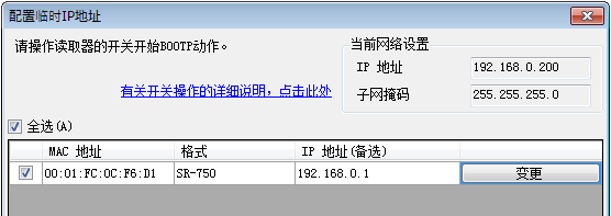 (2) 操作讀碼器開(kāi)關(guān)來(lái)啟動(dòng) BOOTP 動(dòng)作。