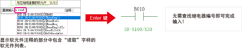 當(dāng)您使用階梯圖程式時(shí),您可以直接將元件註釋或參數(shù)名稱(chēng)輸入到自動(dòng)搜索並顯示輸入候選項(xiàng)。